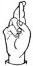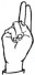 На ћирилици написано ЊЕГОСЛАВ РУХТЕСКИ састоји се из 16 слова [?]. Исписано ћириличном једноручном азбуком за глувонеме: